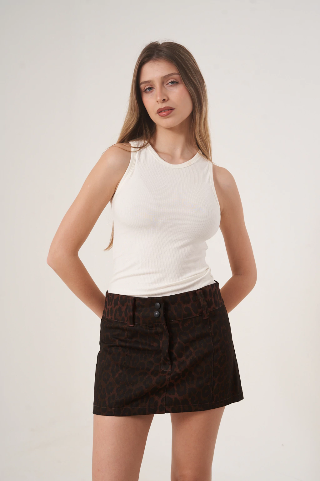 Mini Falda confeccionado en gabardina con detalle de marca, cierre y dos botones. Ideal para sumar al look estilo. Pensado en conjunton con el Chaleco COOL.