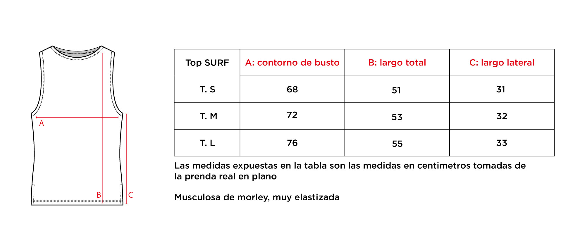 MUSCULOSA SURF Descubrí la comodidad de nuestra musculosa de morley suave, ideal para acompañarte todo el año. Esta prenda es súper elastizada y se adapta perfectamente a tu cuerpo. Disponible en tres talles,