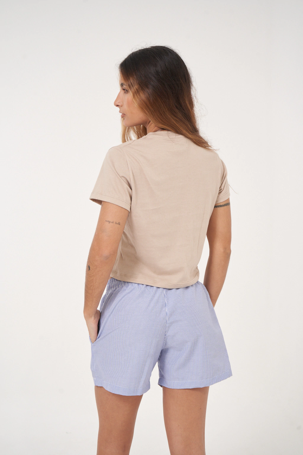 Short Lisboa: ¡Descubre el Short Lisboa, la elección perfecta para este verano! Confeccionado en poplin de alta calidad, este short presenta elegantes rallas azules y blancas que capturan la esencia del estilo portugués, marcando tendencia. Su elástico proporciona una comodidad inigualable, permitiéndote moverte con libertad y estilo en cualquier ocasión.
