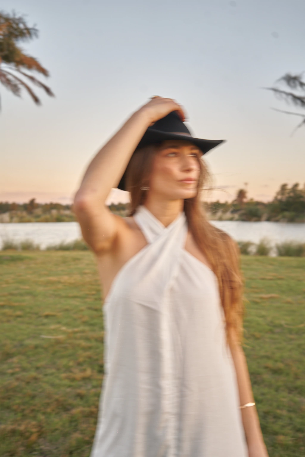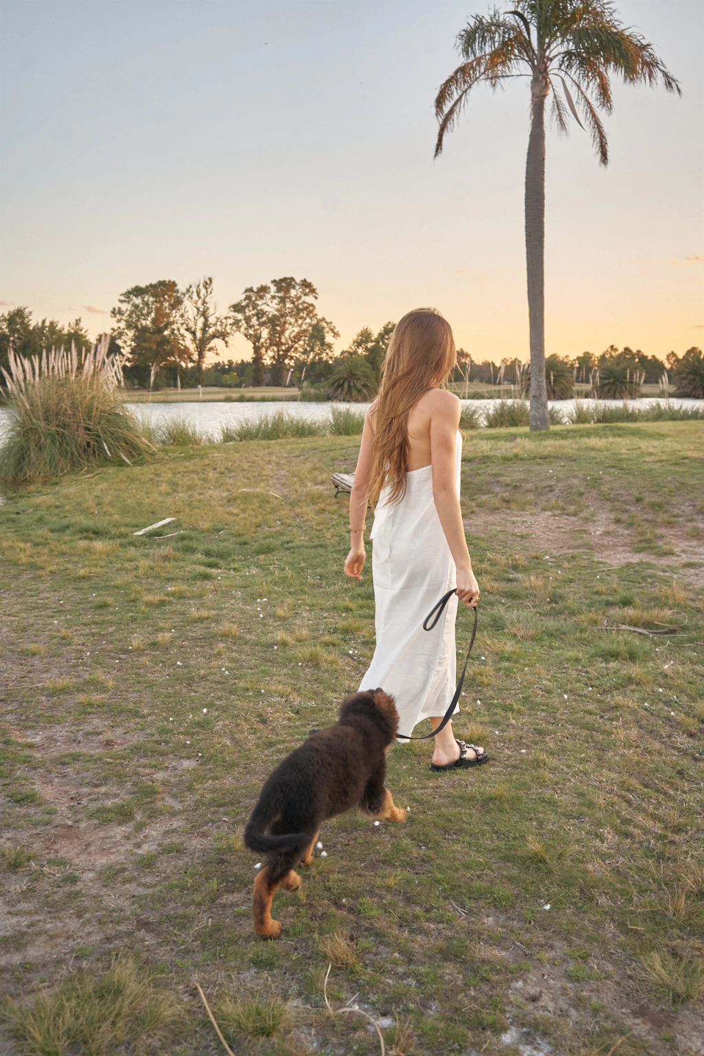 Descubrí el VESTIDO IGNACIA, una prenda confeccionada en lino premium en Argentina, que combina elegancia y frescura. Su escote halter cruzado y el escote en la espalda realzan la silueta con un toque sofisticado.