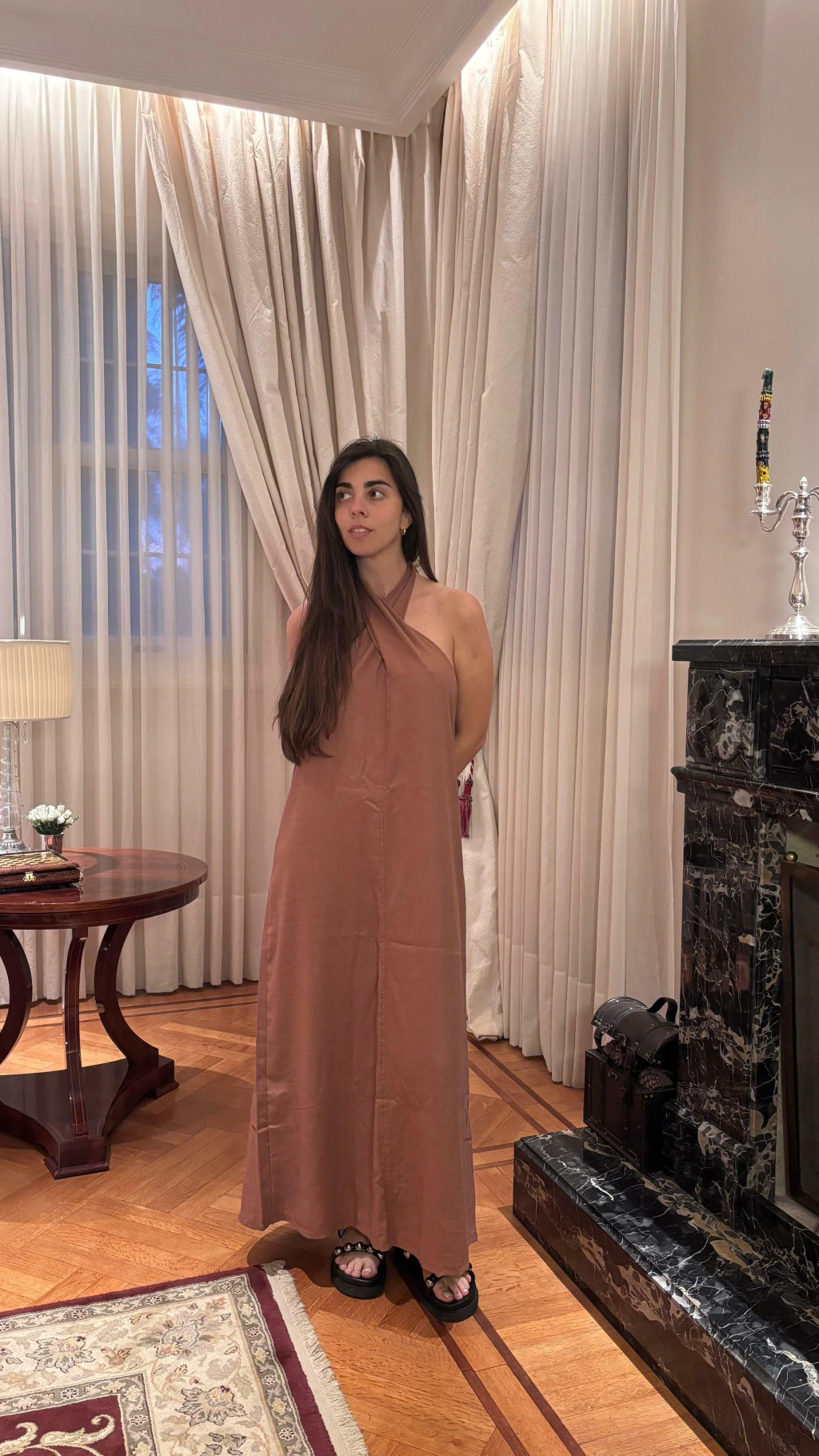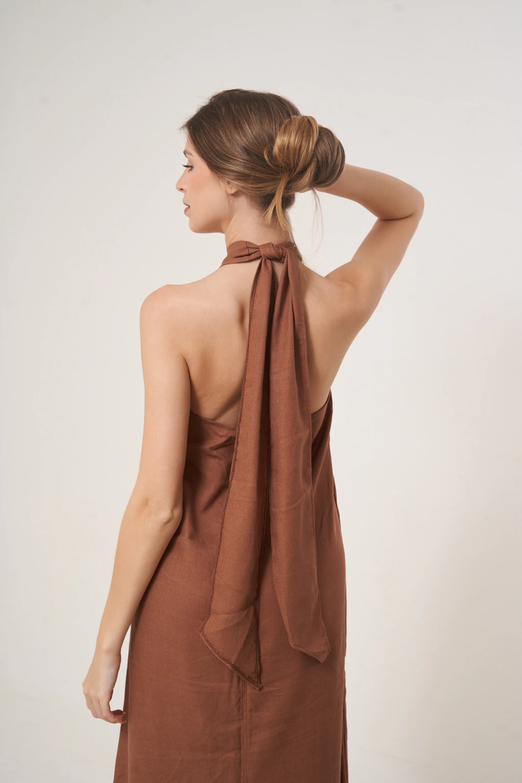 Descubrí el VESTIDO IGNACIA, una prenda confeccionada en lino premium en Argentina, que combina elegancia y frescura. Su escote halter cruzado y el escote en la espalda realzan la silueta con un toque sofisticado.