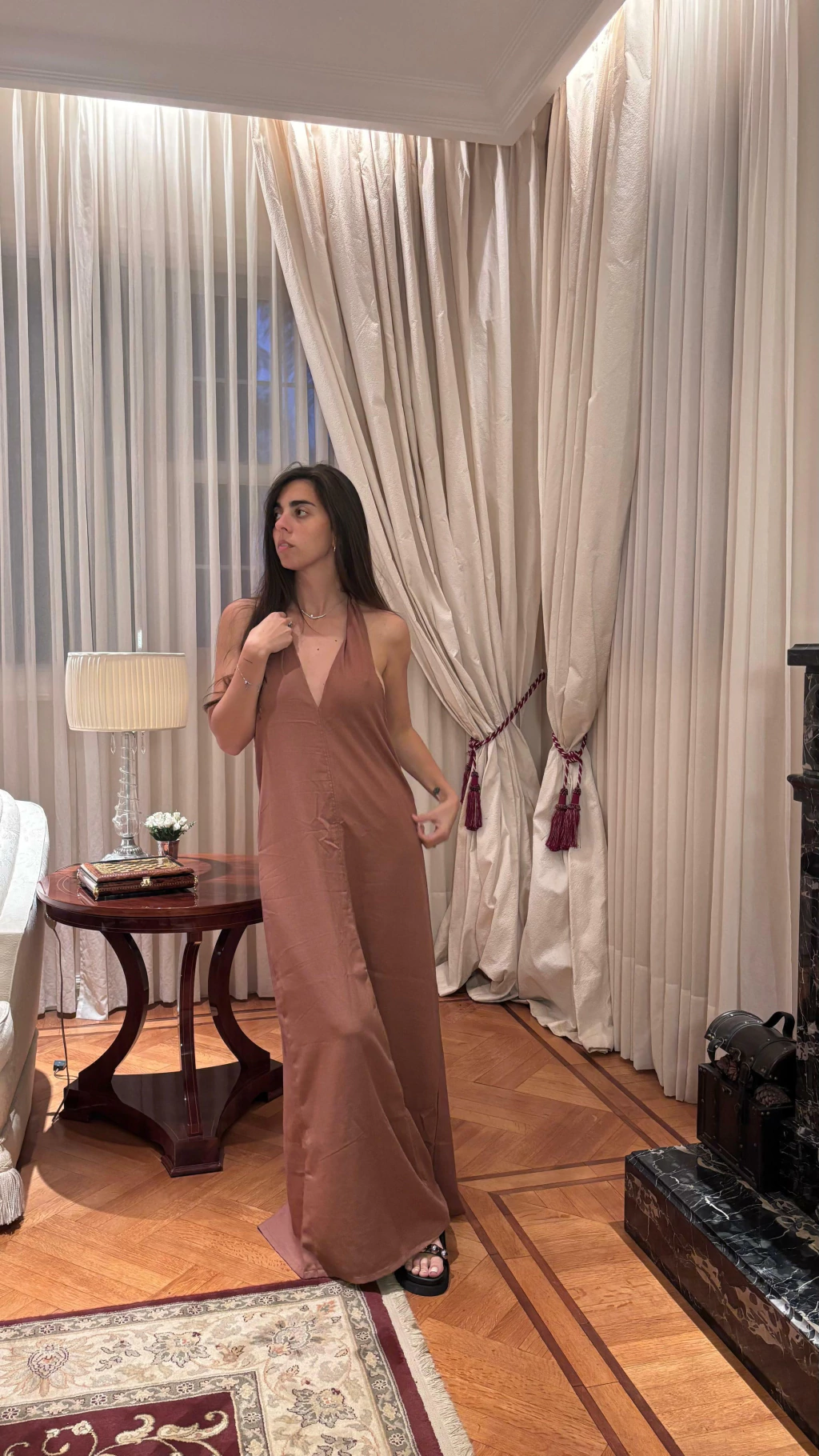 Meri, nuestra modelo, mide 1.70 y usa talle S. Ideal para tus looks más delicados y exclusivos.